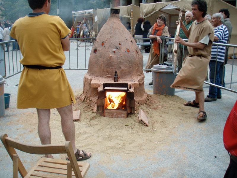 La visita continuó descendiendo al barrio comercial del yacimiento. Allí esperaba el comerciante púnico, que se había dejado caer por la ciudad para mostrar sus cerámicas e intentar hacer alguna transacción comercial, ya que había oído la gran afluencia de gente que acudía a las jornadas iberas de Azaila.